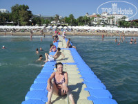 Пляж общественный. До него идти минут 7, улица имеет уклон к морю, обратно идешь чуть дольше. То есть лишний раз не сбегаешь окунуться в море. Если идешь, то сразу на 2-3 часа. Лежаки платно мы не брали, обходились привезенным из дома пляжным полотенцем, нас вполне устраивает. Многие даже без полотенец, шорты сложил на шлепки, и в воду. Все-равно долго на солнце лежать не сможете, солнце очень жгучее. Обязательно берите солнцезащитные средства. И шляпы-панамы лучше привезти с собой, потому что покупать там - дороже.