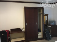 В номере есть кондиционер, холодильник, телевизор, балкон, шкаф, стол с зеркалом, фен, в общем все, что нужно для жизни...) Мебель не старая, не страшная, в нормальном состоянии. но ни шампуней, ни гелей для душа не дают, только жидкое мыло, так что все эти принадлежности надо брать свои.