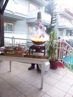 Еще хотелось бы сказать по поводу питания в отеле. Завтраки конечно не особо отличаются разнообразием, иногда пекут блинчики, иногда делают яичницу с колбасой, а так в основном нарезка из ветчины, колбасы, сыры, маслины, отварные яйца, хлопья, каша была за все время наверное только 1 раз. Из фруктов на завтрак дают только арбуз, сладости, булочки не дают. Обеды хорошие, и курица, и мясо, и различные гарниры, куча зелени, овощей, салатов. И самые лучшие, как по мне, это ужины) На ужин почти каждый день повар что-то готовил на огне, прямо при нас, и выбор на ужины всегда хороший, голодными не останетесь.
