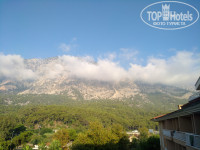 Территория: Территория отеля зеленая, ухоженная, видно, что следят хорошо. Много сосен, а вид на горы такой, что иногда казалось, что смотришь на фотообои.