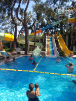 Пляж и бассейны: Пляж отеля я бы сказала, скорее даже не песчано-галечный, а больше песчаный, очень чистый, мусор в мусорных ведрах не копится, убирается регулярно. На момент нашего проживания отель был заполнен на 100%, но с лежаками проблем у нас не возникало. Море также чистое, вход каменистый, но мы в принципе босиком заходили, а дочке младшей я купальные туфли надевала, малышам конечно сложно без обуви специальной. Единственное, что напрягало на пляже, так это то, что пристают с экскурсиями и фотосессией. Основной бассейн огромный просто, возле него пекут очень вкусный гезлеме с различными начинками а вот, что касается лежаков возле него, то их найти там очень сложно, но если свободных не было, то без проблем лежаки приносили. Очень понравился бассейн с новыми водными горками, катались постоянно, очередей на горках нет. Чистота возле бассейнов также везде соблюдается.