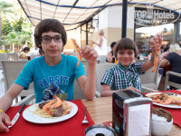 Питание в отеле отличное везде(в основном ресторане, в баре у бассейна, на пляже). Вкусно, много, разнообразно. Были и креветки королевские и осьминоги, а баранина и телятина как отлично готовятся...Мясо и жареное, и на гриле и тушеное (на ваш выбор). Рыба тоже была, особенно понравилась солененькая закусочная рыбка (не знаю названия). Про огромный выбор овощей даже говорить нечего. Особенно вкусны перцы , баклажаны, кабачки и томаты, приготовленные на гриле! Много зелени, соусов, заправок, сыров, маслин и оливок. Замечательные супы-пюре. Вообщем прекрасная турецкая кухня!!! И конечно турецкие сладости, тортики, пахлава, халва...!!!! Разное варенье (особенно из розовых лепестков)! А детям очень по вкусу шоколадная паста. Фрукты разнообразные(арбузы, персики, сливы, яблоки, апельсины, черешня, абрикосы, груши). Кстати, мне очень понравился сам ресторан, его оформление. А главное, много доброжелательных, внимательных и старательных официантов! Чего не скажешь о многих гостях отеля, то чем-то недовольных, то таких высокомерных (ну, прям, "олигархи" на Багамах). Напитки тоже понравились (пиво неплохое, коктейли). В тени деревьев по дороге из ресторана на пляж в беседке женщина печет гезлеме, с разными начинками, очень мастерски раскатывает тесто, смачно кладет начинку, печет на специальной печке. А как вкусно! Нам больше всего понравилось с сахаром и корицей.