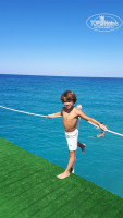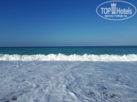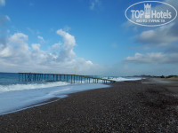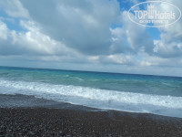 Про море - оно замечательное, необыкновенного цвета. Чистое, несмотря на постоянное волнение. А волны действительно там всегда, но из 15 дней отдыха мы не плавали только 1 день. Зато какие фото... Действительно каменистый галечный вход, но мы обходились без специальных тапочек. С удовольствием плавали. Есть пирс, неплохой. Но не хватает лестницы для спуска в воду. Пляж чистый, т.к. мусор постоянно убирают. Лежаки приходилось занимать в 6-7 утра. Но и это не особо напрягало. На пляже хороший бар, где можно утолить жажду, и даже пообедать (что мы иногда и делали - не уходя в ресторан). Детям очень нравились картофель фри и нагетсы. Правда, в последние 3 дня картофель везде закончился - дети огорчались.