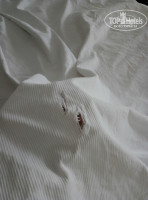Пять полотенец на двоих. Говорят, у них такой стандарт. Могут постелить рваное белье.