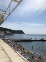 На пляж ходит канатка, вход по браслетам, работает с 8 до 19, перерыв с 11-30 до 12. Пляж собственный, небольшой, заход в море не очень, камни крупные, с пирса только верёвка висит, мостика нет. Мы загорали наверху в солярии, согласно выбранной категории. Номера стандарт располагались у моря. Бунгало как в описании на сайте нет и в помине, просто лежаки и навес частично. Пляжные полотенца брали на ресепшен, без доплат, меняли там же. Депозит за браслеты 500 р. за двоих.