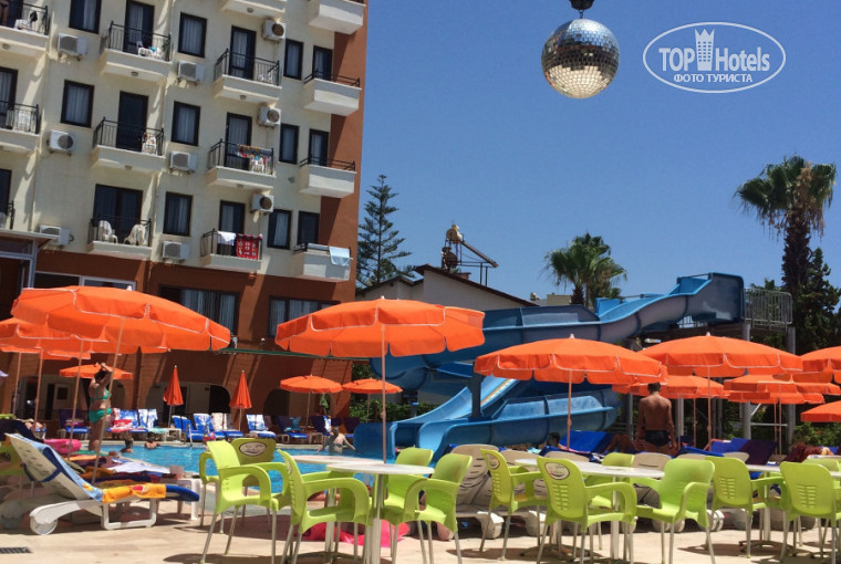 Мы приехали рано утром часов в 6 , в 7:30 на ресепшене Надежда нам сказала что мы можем идти на завтрак . Очередь действительно есть почему то за блинами, гости видимо первый раз былины пробуют ))) как понимаете вина не сотрудника а клиентов которые вместо того чтоб брать другое стоят там и создают очередь) готовят вкусно .Между обедом и завтраком готовят в баре лепешки или дают пироженки :голодными не останетесь. Мы сидели так же ждали страндартного заселения которое было не ранее 12ч, мы дали 10$ чтоб нам дали хороший номер, хотя просили они 20, но видимо улыбка моего мужа сразила на повал девушку Телинию ( вроде её так зовут на ресепшене) Хочу отметить эта девушка не поможет вообще ,абсолютно никакой вопрос не решит, но как вы помните есть ещё Надя так вот обращайтесь к ней она максимально вникает в суть любой проблемы и решит ее( хотя с виду она такая странная тётя ..-)))). Холодильник плохо работал :не надеялись даже на него. Сейф был не нужен не брали.(10$ на неделю) Про уборку скажу следующее : каждый день мы оставляли на чай, женщина убиралась всегда и полотенца меняла как только мы их кидали на пол ванны после уборки оставляла на кровати из пледа -бантики и т.д. Ну разве не мило?))) вот лучше ей эти деньги отдать чем за сейф. Ну вы поняли. курение: отель для не курящих но пепельницы есть и в номере и в баре . В общем курят там везде. При отеле есть магазин мы там купили дохрена рахат лукума и все коробки оказались с червяками , представляете кому мы дарили эти коробчки перезванивали и говорили , так стыдно было..не могу вам советовать где покупать лукум. Когда выходите справа есть магазин там парень молодой работает и отец , торгуйтесь с парнем)) проходите ещё правее там уличное агенство :сидят 2 женщины и мужчина -Керим зовут. Не бойтесь смело обращайтесь цены вас приятно удивят и вы ни сколько не пожалеете( у них попугай Якуб сидит ) передавайте привет ему от Айрата. Пляж чистый, море голубое ,шезлонги свободные всегда были. На пляже есть соки . Бассейн чистый 3 раза в день включают горки . Аниматоры играют с детьми, особенно вечером танцы, после которых ребёнок вырубиться от усталости. Так же на параллельной улице есть магазин Sok там дёшево , а вечером на улице продают кучу всего торгуйтесь )) Далее интернет :можно зайти утром и вечером на 5 минут, все остальное время не пробуйте наслаждайтесь морем вы же для этого едете отдыхать ) отзыв так же будет на ютубе