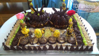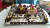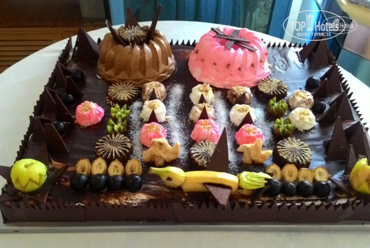 Каждый ужин в придачу к пирожным и эклерам стоял торт размером ... 60*100? Сложно на глазок, но большой. Вот резать его начинают с 8 вечера. Возможно из-за местных, которые ходят на ужин в 19.30. Но не запрещено приходить второй раз на чай))