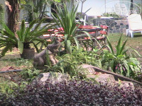 - В отличие от многих других отелей рядом нет помойки, также в отличие от многих других отелей окна на улицу не выходят прямо на дорогу, а на маленький дворик с деревом увитым лампочками с лавочками, где очень мило поболтать вечером.