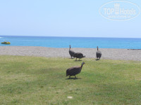 На территории есть свой мини зоопарк. Пахучий и вонючий. В его районе бегают красивые куропатки и павлины.