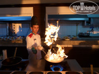 Были в трёх ресторанах. В турецком нам понравилось больше из-за атмосферы. В рыбном давали вкусную рыбёшку. В Итальянском ничего от итальянского не было. Странно, но периодически нам попадались испорченные фрукты. То арбуз прокисший, то апельсины с червячком, бананы на последнем издыхании,...