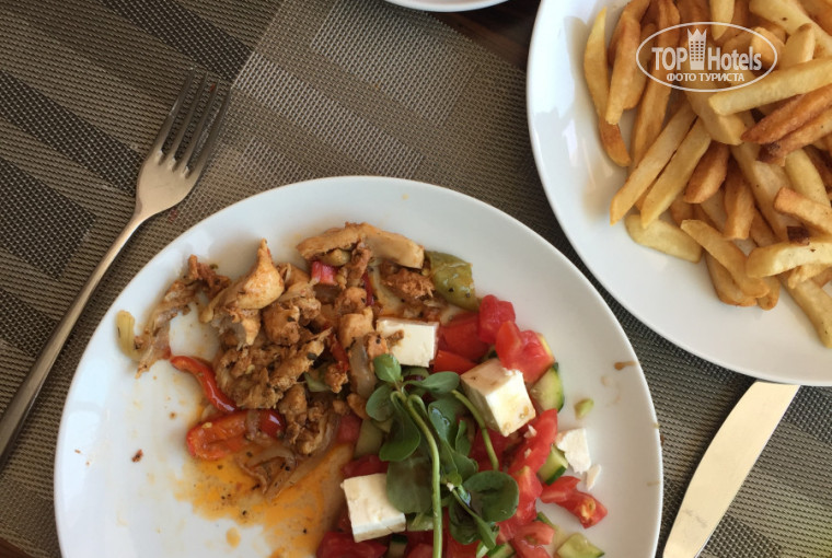 Еда средняя. Много закосов под русскую кухню типа оливье и соленых огурцов, но они у них не особо получаются. Раз в неделю на улице жарят рыбу, и один раз делают шашлык (на мой вкус очень жирный и острый, хотя парень ел с удовольствием). Фруктов мало!! Десерты представляют собой булку и крем. Самое крутое — пахлава, но она бывает не каждый день. По утрам готовят очень вкусную яичницу с сыром.