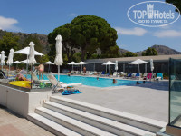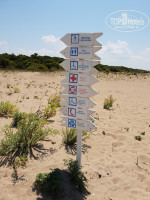 Территория: Отель маленький, но территория очень длинная. Как я писал ранее, есть корпуса очень далеко от моря и номера прям рядом с ним. Отель делится на две части: Сам отель и Бутик. На фотографиях можно увидеть схему отеля. Территория очень зелёная, а рядом с отелем находится заповедник (то есть вокруг отеля только лес). До пляжа надо идти по мосту через речку, находится он недалёко от отеля. Людей в отеле было мало (по ощущениям), так как в ресторане очередей почти не было, а на пляже всегда были свободные места в огромном количестве. Вокруг отеля есть пару таверн, минимаркет и другой отель.