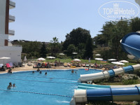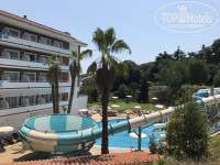 Отличный отель, расположенный в самом центре, все в шаговой доступности ( автовокзал, пляж, магазины,бары)В номере кондиционер ( бесплатно, работает от обрезанной карточки ?),две кровати, две тумбы, туалетный столик, стул, телевизор, зеркало, шкаф купе, в ванной фен, ваннана ,унитаз, биде, раковина, на балконе два стула и столик. Нет сушилок для белья, холодильника,в номере одна розетка. Брали завтрак-ужин, все достойно??. Ужин можно менять на обед, если хотите заказать пикник, то нужно это сделать до 19-00 накануне на ресепшн.Можно пользоваться аквапарком
