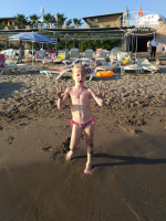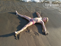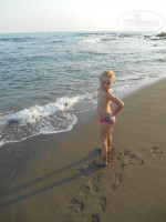 Пляж довольно большой, песчаный, но вход в воду галечный и местами каменистый. Удобный для себя вход мы нашли и уже по этому поводу "не парились". На пляже есть и бар и снек-бар. Голодными никто не оставлял)))