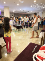 Приветствую всех, если хотите испортить себе отпуск вам сюда. Каждый год отдыхаем в Турции и не только, были в различных отелях, но откуда у этого отеля хорошие отзывы не представляю. Начнём описывать "достоинства". Вылетали из Казани, рейс задержали на 3 ч, прилетели нас встретила девушка представитель Sunmar, без формы (ссылалась, что она устроилась не давно). Дорога около 1.5ч, водитель плутал, именно плутал по отелям, заварачивал не туда. К нашему отелю мы подъезжали 3 раза, ИСКАЛИ Въезд. Персонал ужасный, по русски типа не понимают, нам одели браслеты и, внимание даже не проводили в номер. А номера я скажу расположены по очень узким лабирантам, мы шли до номера полчаса, как в лабиринте. Так как у нас маленький ребёнок 2г, две коляска в коридоре не могут разъехаться, если на пути встреться ещё кто-то. Мы просили поменять номер, но нам объяснили, что свободных номеров нет. Нам дали номер с раздельными кроватими, нам пришлось их соединять и чтобы ребёнок не правалился подкладывали одеяло. На ресепшене я попросила ещё одно одеяло, нам его так и не принесли за 2 недели отдыха, просьба была неоднократная. Даже не знаю с чего продолжить, начну с питания. Более скудного питания не было за все время, сколько мы отдыхали в Турции на протяжении многих лет. Детский стол есть, но там все блюда, перенесли со взрослого стола. Объясните как можно кормить детей турецким переперченным и острым супом? Была картошка фри и макароны только в начале ужина. Весь ресторан был практически пустой, десерты не вкусные, супы есть невозможно, фрукты были, но не все свежее. Питались только макаронами и картошкой на отдыхе. Был один раз рыбный день и давали раков, но мы пришли в 19-30 и все столы были пустые. Там женщина даже устроила истерику, что кормить детей нечем, и все голодные. Действительно кроме скатертей на столах больше ничего осталось. Рыбы не было за весь период отдыха, только копчёная какая то. Очередь была тысячная в ресторан перед открытием, особенно ужина. Фото прилагаю. Отель просто набрал народ, но он не рассчитан на такое количество людей. Анимация никакая. Развлекали, что детей, что взрослых одни и те же люди. Это кошмар! Каждый день одно и тоже, пару раз приезжали акробаты. Мороженое было, были водные горки, кстати аккуратно с самой большой и круглой горки, потому что когда оказываешься в воде, перед лицом оказывается плитка. Детская зона с горками рассчитана все таки на детей от 3-5 лет, маленьким деткам там опасно. Игровая площадка на тысячный отель:2 качели и 2 горки и всё. Интернета вообще нет, они продали пароль который не работал на протяжении недели, каждый день обещали его поменять или вернуть деньги, написала бы отзыв раньше если был бы интернет, но руки только дошли, но этот отзыв, который действительно достоин внимания. Интернет в лобби еле ловит. Если работа удалённая по интернету, работать не возможно. Вернусь к коридорам - лабиринтам, приходится кружится по ним весь, отпуск провели в коридоре. Ковры по которым идёшь не мыли ни разу за все существование отеля. Алкоголь и коктейли гавно. Извините за русский. Бутылированная вода только в ресторане после обеда, на пляже кулер. Но мы приехали к морю. Чтобы дойти до пляжа, нужно перейти подземный переход, далее 100 м и вы на пляже, с одной стороны трасса, с другой море. Идёшь сначала по песку, потом галька, потом крупная, 