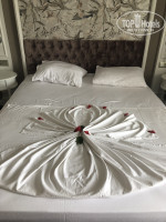 Заселение прошло быстро, так как мы приехали уже в 19:00 и нам сразу выдали ключ от номера, корпус самый ближний к морю 5 этаж и вид на бассейн ( угловой на море). Номер чистый , мебель новая , нареканий по номеру нет, убирали каждый день( оставляли шоколадки Аленка, которые я благополучно закупила перед отлетом, денег не оставляла ни одного дня) и в все хорошо убиралось . Вода в номере пополнялась каждый день. Шум от постоянной музыки вообще ни как не напрягал. Ресторан чистый, по еде голодными не останетесь , лично я даже не успела все попробовать. Очереди на гриле отдыхающие сами и создают, придите на 30 минут по позже и очереди не будет. Еду постоянно обновляют, пустых лотков нет. Один большой минус это маленький пляж, но я прежде чем поехать это прекрасно осознавала. Готовьтесь к тому что вам не где будет позагорать, так как лежаки возле бассейна занимаются с 5 утра и у моря так же, меня не напрягало, я после обеда ходила загорать и лежаки на пляже и пирсах были, у бассейна не найдёте. Я ходила с утра плавать на бассейн который возле горок рядом с апельсиновой рощей, лежаков там мало, но там очень с утра спокойно и народу нету. Анимация каждый день, ребята молодцы, развлекали на все 100. Про вай-фай это отдельная песня, он там есть , но он очень слабый, фото невозможно загрузить , на переписку по ватсап хватит, но некоторым везло они ещё как то созванивались )))) мы ходили на рынок который на против отеля Rubi hotel там есть кальянная посередине рынка ( с левой стороны), она светится мимо не пройдёте , вот там можно подключиться к хорошему вай фай( запаролен) и заодно желающим покурить кальян. Море чистое и тёплое. В море пологий вход( песок с мелкой ракушкой) чуть дальше метров 7 уже в море лежат плиты, но это не мешало, так как глубина достаточная, чтобы встать и передохнуть. Территория большая , но есть места где ещё очень не убрано и валяется хлам после реновации. Впринципе за чем я ехала то и получила, хотя перед отлетом начиталась столько негатива, что даже не хотелось ехать, но все прошло благополучно. Для бюджетного отдыха сойдёт.