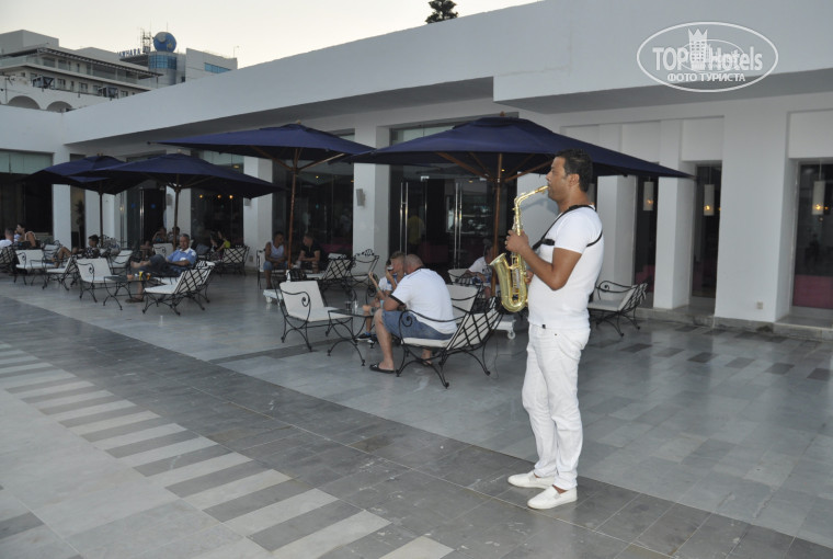 Питание: завтрак, обед и ужин в одном общем ресторане, в две смены, по карточкам. Еды вроде бы много, но нет разнообразия. На завтрак : выпечка, йогурты, омлет, яичница, колбаса, сыр. Обед : курица, индейка, говядина не всегда, овощи на пару, макароны, рис, картофель, салаты, сладкое, фрукты. Ужин во многм похож на обед. В отеле есть три ресторана а- ля карт : тунисский, ливанский и итальянский. И один платный рыбный ресторан. В течении дня на территорию пекут блины и пончики.