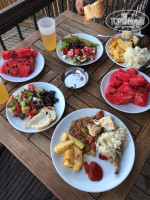 Еда. Нормально. Но нормально для отеля 3-х звёзд, для 4-х звёзд, как себя позиционирует отель, слабо. Салаты с майонезом я не ела, поэтому оценить не могу. Один раз была скисшая картошка, два раза был скисший салат из овощей. Вкусный арбуз, давали виноград, груши и сливы. Была курица, баклажаны, кабачки, картошка фри, рис, котлеты из мяса (1 раз) На завтрак всегда либо яичница, либо омлет, оладья (1 раз) . В ресторане, в принципе как и везде, просто дикое хрючево и грязища, подносы с едой бьют током. Официанты только делают вид, что убирают. Что касается алкоголя, то мы его не пили, тк знаем, что в отелях такого класса он оставляет желать лучшего, поэтому привозили бутылки с собой. Пробовали пиво, нормально. Бар работает до 11, однако, было очень неприятно, когда в 22:55 бармен отказался нам налить колу.