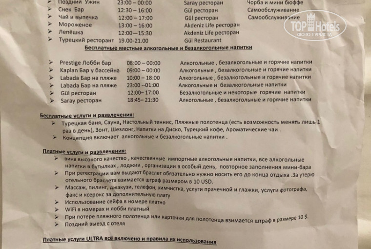 В отеле подаются импортные напитки, они не входят в бесплатную концепцию отеля. Оплата производится отдельно. Из местных бесплатных алкогольных напитков к вашему сервису множество других - ракы, текила, ром, водка, джин, вермут, коньяк, ликеры, вина.