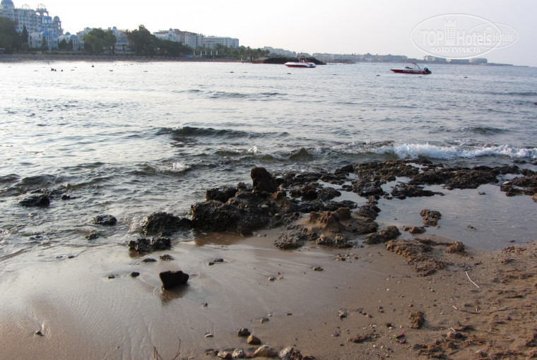 Пляжа в общем нет, лежаков мало, всегда заняты, заход ужасен, камни глыбы, много острых кусков, до буйков доплыть даже с пирса опасно, глыбы, высокие камни по всюду! В мае видимо уровень воды выше и люди не цеплялись животом, коленками, ногами, руками за них, когда плавали. Я очень аккуратно плавала, но коленку все же разбила, видела очень много народу пострадавших на пляже, даже дети, ужас! поскальзывались на каменной плите и падали, страшно скажу вам все это!