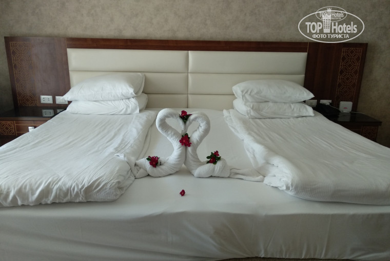 Отдыхали семей, ребенку 4 года. Прилетели утром (3 часа ночи) заселения началось с того что мы меняли номер 4 раза! Здесь такая проблемка есть, изначально на ресепшене давали номера в дальних корпусах и немного по трепаных (объясняя тем что номера все занятые-придите к завтра обеду и вам дадут номер) так как мы хотели спать остались в том номере, к обеду я пошла на ресепшн и мне поменяли его на другой номер (фото прелагается). Обслуживание - весь персонал вежливый не навязчивый (ну понятно как везде в Египте), представитель отеля Алеся очень нам помогала в решении некоторых вопросов - отдельное ей "спасибо"! Уборка - в отеле ресторане: как только что-то упало сразу же подходят уборщики и подметают, плитка по всей территории моется каждый вечер, (видно как менеджера это контролируют) в номере мы оставляли $ так как для ребенка было в радость приходить и видеть эти шедевры с полотенец (и убирал он тоже хорошо). Еда разнообразная Египетская (среда рыбный день - креветки). Для разных возрастов детей есть аква парки (3 шт). Пляж - понтон длинный где-то 800 метров но по средине есть вход для детей - ниже пояса, песок и лазурная вода)), дальше большая глубина есть бесплатные жилеты! Впрочем мы довольны отдыхом!