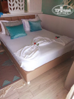 Немного маленький какой-то, мне показалось больше полуторный для одной персоны, чем двуспальный для двоих, но мы туда ехали не в номере находиться или лежать, поэтому не считаю это уж большой проблемой.Кровать небольшая. Но мне было удобно. Подушек много. (я люблю спать на нескольких подушках)))). Кровать в номере стоит так, что открывается прекрасный фронтальный вид на море. ВИД бесподобный. Ночью кондиционер в основном мы выключали, открывали балкон, и наслаждались запахом моря….