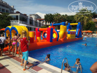 Добрый день! Отдыхали в отеле большой компанией с детьми от 4 до 10 лет, непосредственно в номере были вдвоем с ребенком в период с 08 по 22 июня 2018. Наши друзья приезжали через пару дней, поэтому на ресепшен я сделала заявку, чтобы из разместили поближе к нам. В итоге им дали номера прямо напротив моего, спасибо огромное персоналу за это!!!! Такие казалось бы мелочи делают отпуск гораздо приятнее. Мы с дочей приехали в отель 8 июня около 21.00 размещение заняло не более 5 минут. На ужин к сожалению уже не успели, разместили в корпусе Жасмин номер комнаты 2211, номер выходил на индивидуальный бассейн рядом с корпусом, было очень удобно плавать в бассейне, когда ребенок спал днем. В номере: 2 отдельные кровати (без проблем сдвинули вместе), жк телевизор (мультики можно настроить самим), холодильник, на балконе стол и 2 стульчика, в ванной фен, жидкое мыло, мыло кусковое. Спокойно разобрали вещи, помылись и в 23 пошли кушать суп и бутерброды. А со следующего дня началась веселуха))))))) Переживала сильно по поводу wi fi, но честно скажу даже не хотелось в руки брать телефон, такое количество развлечений в отеле, что аж разорваться хочется))) В номер заходили только поспать и переодеться перед ужином. Еда вполне нас устраивала, мясо, овощи, фрукты всего хватало, единственное ассортимент завтраков хотелось бы расширить, но для тех кто остался голодный можно идти в снек бар, за печеньками и т.п. Поскольку я не любитель фри и бургеров, то я в те бары крайне редко заходила. Обслуживание в ресторане как и везде, но все прекрасно понимают, что небольшие чаевые официанту творят чудеса, как и в уборке номера. Море очень приятное, у кого совсем маленькие дети, можно пройти к мысу мин 5-7 там пологий вход и песочек, также хороший вид для фотосессий. Лежаки на море и около бассейна всегда находили или чуть отодвигали вещи и временно располагались, конфликтных ситуаций ни разу не было, все входят в положение, что в отеле много народу. В день рождения в номер получила приятный сюрприз от отеля (открытка, вино, фрукты), а так же очень приятная девушка Анастасия записала всю нашу компанию без очереди в этот день в ресторан Аля карт (был рыбный день, рыба целиком гораздо вкуснее филе). Описывать каждый день нашего пребываю не вижу смысла, т.к. было очень весело и полно позитивных эмоций. Я очень рекомендую этот отель семейным парам, кто любит активно проводить время, но с маленьким ребенком это тяжело совместить, здесь все рядом и бассейн и детская площадка и мини клуб и бар, очень удобное расположение. Для любителей тусовок ночных бунгало подойдут, а кто любит потише конечно корпус Жасмин. В отеле понравилось все, за пределами отеля некоторые вещи разочаровали в Турции. В отеле работает гид Агабек от турфирмы Fit holidays (летели от Библио Глобус) на 1 встрече начал запугивать туристов не выходить из отеля. Купили у него 2 экскурсии,т.к. с ребенком экспериментов на улице не хотелось. Все, что он рассказывает полное вранье, ехать всегда в 2 раза больше, экскурсии у него в 2 раза дороже, автобусы без кондеев. На экскурсии рафтинг всех как свиней засунули в ледяную воду, шлемы и жилеты все рваные и не застегиваются, МЕД ПОМОЩИ НА РАФТИНГЕ НЕ ОКАЗЫВАЮТ!!! Короче отдыхайте в отеле, спокойнее будет)))