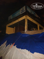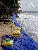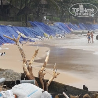 Ехали осознанно в сезон дождей, но такого совсем не ожидали. То, что дожди льют почти постоянно ( а не только вечером и ночью, как обещал туропратор и отзывы туристов) - полбеды. В отеле просто напрочь отсуствует пляж. Вернее он есть, но на него не попасть, он смыт. Сразу за последними пальмами идет резкий обрыв высотой не менее 2х метров. Обрыв обтянут синей пленкой, в качестве спуска прилажены мешки с песком. На пляже стоит экскаватор, который периодически закапывает в песок бетонные кольца, они же просто лежат тут же на песке. Эта проблема и в соседних отелях, но не во всех. Туроператор об этом знал, но никого не предупредил.