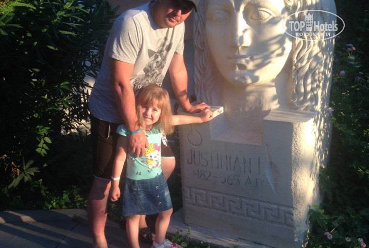 Отдыхали семьёй в августе месяце. На семью брали два номера, номера были в корпусах рядом с ресепшеном.Корпуса были далековато от моря ( надо было идти в горку), но был плюс, что также были далеко от амфитеатра, где проходили вечеринки, а у нас было тихо и спокойно.Что можно сказать об отеле в целом и в двух словах, территория большая, зелёная очень много деревьев, насаждений, за которыми усердно ухаживают, то есть можно сделать очень красивые фото.На территории отеля 5 бассейнов, где Вы можете спокойно купаться.Очень большой плюс, что есть для совсем маленьких, мелкий бассейн под навесом с небольшими горками, также имеется детская площадка ( хотя за неделю моя дочь там и непоявилась, не могли вытащить из бассейна).В этом году в отеле, очень хорошая анимационная группа, ребята веселые, было впечатление что эта работа для них в кайф! Старший сын только с ними и находился, то играл во что то, то веселился, то танцевал.Очень подружился с аниматором Кубой, большое ему спасибо, за работу с детьми...да и взрослым было очень весело...Что касается пищи, кормят хорошо, голодным не будешь, шеф- повар молодец, каждый день чем то удивлял, то жареная рыба, то суп от шеф повара...Единственное что людей было много поэтому приходилось ждать столы, но это не так критично, поэтому начали приходить чуть позже и эта проблема сама собой отпала.Детям также после ужина всегда раздавали бесплатное мороженое.Также ещё хочу написать, что на территории имеется магазин, где можно купить не так дорого всякие безделушки в подарок родным, также есть фотоателье где можно заказать на память блюдца, фотосессии и просто памятные вещи...Вообщем про отель можно написать очень много положительного, мы были много раз в Турции и в разных отелях, но этот отель мог утереть нос многим отелям 5*, хотя он и четвёрка.я думаю, что мы семьёй будем его рассматривать и на следующий год для поездки в отпуск...