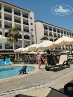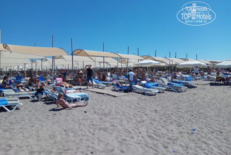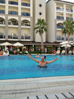 Начитавшись в основном положительных отзывов , купили тур и вперед к Средиземному морю, в любимую Турцию!! Anextur не обманул наших ожиданий: перелет, трансфер туда и обратно на высоте, исключая обязательное посещение ненужных магазинов/ но традиция - вытерпели/. Прилетели рано утром, в 8 часов - заселение после 12. Окей - позавтракали и к долгожданному морю. Первый сюрприз - очень высокая волна, под ногами галька, острая, ноги затягиваются, где-то с метр от берега мелко, потом сразу резко выше пояса и сбивает с ног волной. За 10 дней штиль был 1 раз! В остальное воемя красно-желтый флаг! В море не сильно много народа, очевидно потому что детям там делать нечего! Исходя их этого у бассейнов при отеле все места заняты с раннего утра до вечера - там проще купать детишек, которыми отель просто кишит! Далее: пляж произвел удручающее впечатление: народ стащил массу лежаков поближе к морю , между лежаками нет места, чтобы просто поставить ногу! Ладно, легли подальше, не переставая удивляться, что они все сгрудились в одном месте? Айран!! Особая песня! В большом бачке плавает что-то с осевшим осадком, который периодически помешивает служащий пляжа!! По вкусу эта биомасса к айрану/ холодному и кислому/ не имеет никакого отношения. Расстроившись на пляже, вернулись в отель, продолжая искать положительные предпосылки для начинающегося отдыха. Заселили ровно в 12, как было обещано. Номер эконом - маленький и без балкона. Окно не мылось с момента постройки отеля: свет еще проходил, но разглядеть улицу не получалось.Если бы это было самое плохое!! Весь ужас случился в ночи: в нижнем помещении ДРУГОГО КРЫЛА до 2 ночи дискотека! Слышимость, как будто танцуют у тебя в номере!И это оказалось не самым худшим: на следующий день в соседний 1106 номер заехала парочка, которая по ночам/ после дискотеки/ выясняла отношения!! До трех часов уже утра! Пыталась обращаться на рецепшен и к гастрлейшн - не помогло! Пять ночей, пока тагил не с'ехал - не спали по ночам.. Ресторан отдельная песня - народ как с цепи сорвался: везде очереди, все толкаются , заставляют детей! пролезать без очереди!! На ужин очередь под дверью, если не придешь пораньше - будешь есть на улице, где курят и жара +35. При том, что сама кухня ВЕЛИКОЛЕПНАЯ, всего всегда много, и все очень вкусное. Перечислять не стану - это нереально! Шефповар и его помощники большие молодцы! Огромное им спасибо. Вайфай скудный: то есть , то нет- не понравилось. Вечером совершенно нечего делать, то есть совсем. Шоу, которые приглашаются уровнем сельского клуба, смотреть неинтересно и очень душно. Отдельная песня бар: за обедом и ужином НЕТ крепких напитков, только пиво и вино. Нужно из ресторана подниматься на второй этаж в лобби бар, там нальют 2см виски со льдом, и неси это в ресторан сам. Далековато и неудобно, и удивительно при заявленном ультра все включено! Даже сок томатный наливают в баре в маленький стаканчик гр 70, половинку! Столкнулись с этим в первый раз и сказать, что изумились будет мало. Порции алкоголя крохотные и сильно разбавленные. Привыкли искать на отдыхе позитив и не заморачиваться с мелкими недостатками, но здесь они перерастали в большие проблемы. Отдохнули вроде и неплохо, но осадок остался. Теперь о хорошем - отличный басссейн, замечательные аниматоры, которые развлекают целый день до позднего вечера. Спасибо им. Отзывчивый пер
