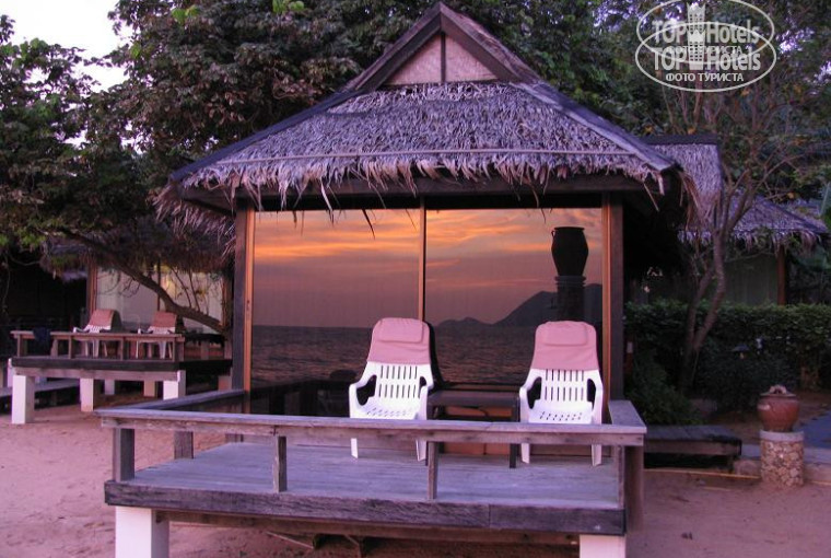 3) Отель. Приехали и сразу попали в тропическую тишину. После шумной Паттайи контраст разительный. На ресепшене на схеме расположения бунгало (мы заказывали береговые, Beach Superior) нам предложили №215 и этот номер нас устроил. Вообще, практически все береговые бунгало хороши, кроме №№204,205,206 и 207, они обращены на бассейн и пляж возле них каменистый. Кроме того №№205 и 206 не имею терассы, а она нужна (обязательно!), потому что посидеть на собственной терассе с видом на море или покушать там же - незабываемые впечатления.