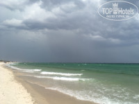 Пляж. Лежаки очень удобные, даже матрасы ни к чему) проблема многих отелей Туниса - жесткие пластмассовые лежаки. Но тут они мягкие с сеткой.