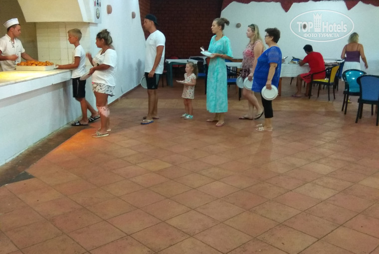 Если Вы не хотите испортить отдых себе, то лучше этот отель обходить стороной!! Питание это просто капец, из мяса одна колбаса ( у кошек лучше качество) и тушёная курица ,в столовой овощи подают протухшие , собирают со столов и вываливают обратно, и это не только с овощами ,но и с фруктами, фрукты приносят высказанные то в сливках то ещё в каком то соусе . Элементарно тарелок и вилок не хватало, это ПОЗОР!!!! , Отношение к Русским не уважительное, приоритет везде у свои, они даже без очереди подходят и бармен сразу переключается на них , а типа постой подожди, .! Вилки и тарелки приходилось мыть,,покупной водой , и обтирать салфетками. Еда это просто что то с чем то , слов нет . Алкоголь - забудьте что это такое , и лучше закупите в дютифри. Один плюс это море . Все остальное это- Вы никто и место Ваше у параши! Насчёт экскурсоводов , не думайте к ним обращаться, едте сами на такси в 3 раза дешевле обходится, а на электричке в 4! Экскурсоводы разводили чистой воды. Хотел добавить про столовую , что каждый раз , когда туда идёшь , это битва за выживание) и стояние в очереди по 40 минут! А ещё битва за грязную посуду. На баре кстати пиво и напитки наливают в немытые собранные с территории отеля стаканчики , даже с волосами попадались! А им пофигу мы же свиньи для них! Бассейн очень хороший , вода теплая .