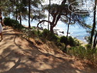 А вот до пляжа нужно добираться пешком 2-3 минуты по крутому спуску или на джипе отеля. Джип развозит людей на пляж с 10:00 до 18:00. Бар на пляже очень скудный, в обеденное время можно перекусить бутербродами, фруктами или лепешками. Пляж песок с мелкой галькой. Мы уходили от нашего пляжа налево ближе к лесу и старались плавать там ближе к скалам. Там гальки почти нет, деткам самое то. Ловили в скалах крабиков больших и маленьких, попадались креветки, раки отшельники и тд.