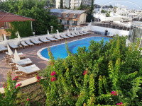 Территория и пляж: Территория отеля не большая, но уютная. Зелени мало, есть несколько терасс для отдыха. 2 водные горки, которые работают по часам. 4 бассейна, в том числе 1 для малышей. Имеется несколько баров и 1 снейк бар. Мини клуб не о чем, детям там очень скучно. Есть уютный кафетерий, где можно попить турецкий чай с пахлавой или другими сладостями. Также можно поесть мороженное с 11:30 до 16:00. Одному человеку на руки не более двух, до дочка бегала туда по несколько раз в течении дня. Есть несколько видов мороженного на выбор.