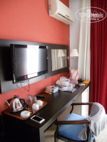 Номер нам попался 115, на первом этаже недалеко от лобби, ремонт не первой свежести, но приличный, есть мелочи в виде того что вода в душе не вся стекает в решётку из-за кривого пола, расстановка мебели изначально хаотична и т.д. но это всё решается. Расставьте мебель как нравится, дополнительная кровать находится с левой стороны внизу под матрасом, её можно вытащить и сделать себе 2 кровати вместо одной, если в ванной мало света - вызовите на ресепшене электрика и через полчаса у вас в душе станет светлее, правда придётся мыть раковину потому что полноватый низенький мужичок, похожий на Супер Марио, залез на неё с ногами, чтобы дотянуться до потолка :) Сейф платный, но это не точно, возможно он работал и бесплатно, а возможно действительно подключается отдельно, в любом случае 2 доллара в день за него дороговато. Номер был с видом на гору, так что музыки и детей у бассейна не слышно, зато слышно машины. С 23 до 6 они ездят поменьше, так что до 23 можно спать с закрытым балконом, потом в 23 или в полночь открыть и наслаждаться прохладой всю ночь. Чтобы не мешали петухи и авто - берите с собой беруши. Шторы плотно закрываются, что позволяет хорошо высыпаться. Телевизор показывает так себе, но можно включать турецкие клипы по DreamTurk вместо радио, есть хорошие песенки, отлично дополняющие витающую вокруг общую атмосферу полного релакса и умиротворения. Также прикольно звучит реклама на турецком, а по выходным на канале FOX идёт сумасшеднее шоу с конкурсами и машиной в виде главного приза, не пропустите где-то после обеда :)