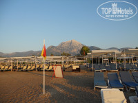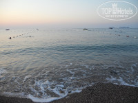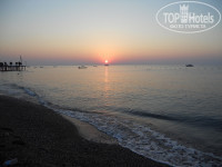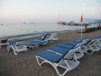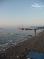 До моря 3-4 минуты пешком по зелёной аллее через ворота за бассейном. Свой пляж 20 метров в ширину и 50 в море до буйков, за которые можно держаться и висеть загорать на них, а можно поплавать и за ними в открытой воде метров 10, берите надувные подушки и вы увеличите своё время пребывания в море в 2-3 раза. Лежаков всегда хватало, полотенца можно менять раз в день на -1 этаже с 8 утра до 7 вечера, но мы меняли всего пару раз, а так носили с собой, т.к. частенько приходили на пляж утром в 6 часов, чтобы встретить рассвет. Солнце поднимается прямо из-за моря, если нет туч, что очень красиво. Вода чистая, тёплая, иногда течение приносит вообще горячую воду, что не хочется вылазить даже вечером, с утра штиль, вечером иногда волны и ветер, которые к темноте стихают. После дождя возможно немного грязи в море, которая уходит за 3-4 часа. Плюс Текировы ещё в том, что там почти не плавают большие экскурсионные корабли и не мусорят, чего не скажешь о пляжах Кемера, Чамьювы и других мест где пролегают ежедневные туристические морские маршруты. В 17 часов волейбол на пляже. Если надумаете играть - берегите колени, никаких прыжков и падений, иначе счёсанная кожа и острые ощущения от купания в солёной воде, а также скованность движений вам обеспечены, проверено на собственном опыте. Также играть лучше в пляжной обуви, камни могут колоть ступни. Многие начинали и заканчивали свою волейбольную карьеру в один и тот же день на наших глазах :) Но прикольному азербайджанцу волейболисту или настойчивым аниматоршам трудно отказать, когда приглашают поиграть :) Душ на пляже свой, хоть он и выглядит не очень презентабельно, но функцию свою выполняет, а также там всегда приятная тёплая вода, не то что в пятёрке рядом - утром горячая, а днём ледяная.