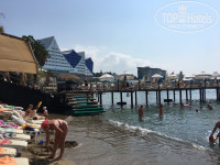 У большого бассейна шезлонгов всем не хватало. Их лучше занимать перед завтраком. На пляж утром можно не ходить, все занято. Пляж крошечный, это один из минусов. Зато смело можно идти на море после обеда. Всегда свободно, как на пляже, так и на пирсе. У пляжа бар с пивом, б\а напитками, бургерами, картошкой фри и местными лепешками мммм.. Море теплое, прозрачное, красивое. Заход так себе.Галька. Пару дней были небольшие волны и море было очень грязное, скорее этот недочет к туристам, которые бросают в море стаканчики, трубочки и прокладки ((