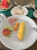 Завтрак. Можно заказать одно горячее блюдо из 5 ( см фото). Остальное по типу шведского стола. Злая тетенька (или дяденька, не поняла, кто это ?, но это Таиланд)))) неохотно всё подносит, поэтому миски в основном всегда пустые. Перед этим надо расписаться в талоне на завтрак с вашим номером рума. Талоны здесь же в этажерке перед входом в зал завтраков. Мы зашли и по незнаемости не расписались, так хозяйка банкетного зала решила погавкать на нас. Муж попытался оправдываться, но я его остановила, мол оно тебе надо. Не обращай внимания, у тебя сабай. Все туристы отзывались о ней , как о грубиянке. Просто игнорьте её, моя твоя не понимать, и она затухает. Она вежлива перед старыми дедушками, которые с молоденькими таечками за ручку ходят. Вот перед ними она аж расплывается. Идёт этот дедулька, еле ножками передвигает, шнурочек на ботах развязался так таечка заботливо присела и завязала, всё для него. Интересно так за ними наблюдать ))))
