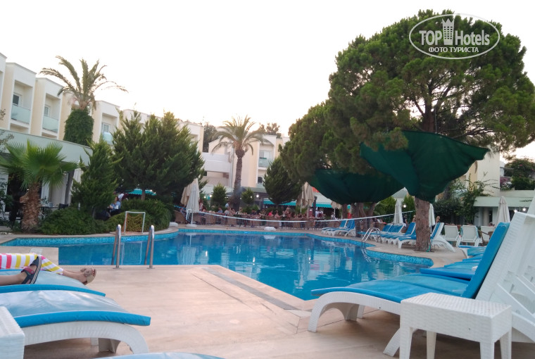 С заселением интересно: спросили сколько нам кроватей (две требовалось), сказали "ок", как-то не настойчиво что-то сказали про кондиционер, улыбнулись как родным, дали ключ, мальчик взял чемодан и покатил, мы за ним. Пришли. За окном стена увитая цветами - отрицать, что сад нельзя, у каждого своё виденье сада, да и с территориями там сложно - горы, вдруг и правда сад, обидеть можно. Это ладно. Номер чистый, две кровати, душ... А потом я поняла эту "улыбку родственника, кондиционер не работал. Беда! И мальчик убежал. Я за ним. Ха. А там, как в сказке : можно и прямо и направо. Спасибо сыну, вывел нервную мать к стойке ресепшена. Вероятно, на моем лице была не только приветливая улыбка (а я довольно дружелюбная и стараюсь не хмурится даже когда расстроена и напугана), но и густая тень страдания, что мечта моя рассыпается от перспективы спать не в номере прохладном, а на шезлонге у моря, а там sinek... И, волшебная сила улыбка+грусть в глазах, привела нас в номер в другом корпусе, через дорожку от основного отеля. Деревянная мебель (прям из дерева) с резьбой, пусть и незатейливой, балкончик, бассейн, море два шага и домик доктора рядом. И кондиционер, старенький, но можно было пингвина домашнего брать с собой. А вот душевая была грустная. Отель сам по себе не новый, климат влажный, грибок по швам в душевой и я нахмурилась. Нахмуриться то я нахмурилась, а турецкий я не знаю (английский только на слух), а они русский не знают, и испанский им не интересен. Вот для решения таких вопросов есть замечательный человек Настя (отельный гид, у вас может быть и не Настя, значит вам не так повезло, как мне). Прибежали эльфы чистоты через 2 минуты, тёрли, очень, даже чем-то едким. Стены приобрели свежесть и сияние, а грибок гладкость и... и никуда не делся. Тёрли они его через день (а через мы на экскурсии ездили) , мне кажется они немного устали от моей наблюдательности, потому что убираться эльфы не очень любят : то мусор забудут, то пол не домоют. Но если мило улыбаться и не выпускать их, то убираются хорошо, только не улыбаются, жаль.