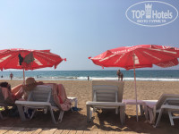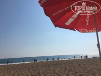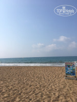 Добираться до него пешком по пустырю 15 минут примерно, на автобусе буквально 5. Но автобус заезжает в этот отель после того, как забрал людей из другого, поэтому он уже забит, а так как народа было много, все время толпились и стояли на головах друг друга. Но мы уже решили на 2 день идти пешком, поэтому проблем с этим не было. Идти туда нормально, обратно часов в 12 ( чтоб успеть на обед) тяжело, солнце осень пекло, деревья там низкие, так что по самому пеклу. У отеля свой пляж, но там отдыхают гости не только этого пляжа, а ещё какого-то. Но места хватала всегда всем, лежаков много, у каждых 2 лежаков 1 зонт. Рядом стоит кафе ( у них бесплатный вай-фай (узнали только в последний лень), можете спросить у работников, они вам введут его. Работники ходят все время, проверяют не заняты ли места всякими тряпками, мол схожу на обед, займу место футболкой, чтоб никто не занял. Они снимают все одежду, чтобы всем всего хватало. Пляж песочный, камней вообще нет, вода чистейшая, вообще не цветёт, тёплая как парное молоко. Когда мы были волны, в последние дни большие, но нам они ниавились, как и всем кто купался. Пляж работает до 6, после этого вы можете там находится, только располагаться придётся на песке. Мы ходили купаться ночью, сначала подумали закрыто и туда нельзя, перешагнули ограду и увидели, что на соседнем пляже купаются, хотя там тоже было закрыто. Короче забили и нормально купались, никто нам ничего не сказал.