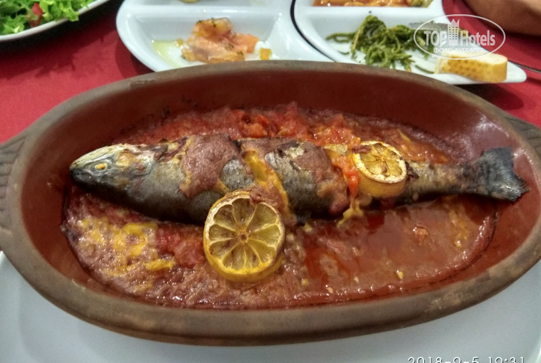 Начну с того, что я в Турции была и мне есть с чем сравнить. Решила мужу на день рождения сделать подарок ввиде путевки на двоих, он в Турции первый раз. Прилетели рано утром, в отеле были в 6ч 45м. Нас оформили, одели браслеты и предложили позавтракать. Так как свободных номеров не было, нам посоветовали на ресепшн переодеться и сходить на море. Так мы и сделали. Море как парное молоко, теплое, теплое. После обеда Светлана - менеджер по работе с гостями помогла нам с номером с видом на море и бонус фрукты+ вино, что очень порадовало. Номер большой, светлый, всё работало. Убирались в номере не каждый день. Еды много, но вся однообразная, но голодными не будете. Мы целыми днями были на пляже. Ездили на черепаший остров на катере, видели морских больших черепах, купались в открытом море, здорово. Водные горки интересны для развлечения. Советую попробовать лепешки которые печёт женщина , очень вкусные.. Светлане огромное спасибо , что записала нас в Аля карт осталось хорошее впечатление, было всё очень вкусно . В целом муж главное был доволен, погода и море радовало, считаю отдых удался.