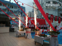 Территория отеля маленькая, но все размещено. Хороший бассейн, горки, 3 бара на основной территории и один на пляже.