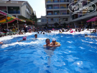 Хотелось бы поделиться впечатлениями об этом отеле. Отдыхала я с дочерью 6 лет. Приехали мы в отели около 10 часов, нам сразу сделали браслеты и предложили пройти позавтракать, заселили нас как и положено в 14 часов, за более ранее заселение предлагали заплатить 20 долларов, чего мы делать не стали. Территория отеля не большая, но в принципе уютная, номера чистые, комфортные, уборка в номерах ежедневная, смена белья раз в три дня. Большой минус данного отеля, это детская анимация, каждый вечер одни и те же танцы, на платной основе можно вечером ребёнку попрыгать на батуте и покататься на машинках, также по вечерам за отдельную плату продают сладкую вату и поп корн. Днём горки в бассейне отключают с 13 до 15 часов. Кормят вкусно, еды хватает, в меню курица, сосиски, колбасы, два раза на ужин была рыба, мяса хорошего там нет, фруктов достаточно, из них персики, яблоки, апельсины, груши, арбуз, сливы и виноград. С 16 до 16.30 кофе брейк со сладкой выпечкой. Пляж находится в 600-1000 метров, приятно прогуляться пешком, но каждые 30 минут ходит маршрутка, поэтому можно и на ней, только её последний рейс в 16.00, то есть в вечернее время только ножками. На пляже есть бар, в котором алкогольные и безалкогольные напитки бесплатно и в любом количестве, можно на обед остаться на пляже, кормят вполне нормально: наггетсы, картофель фри, бургеры, и много овощей. Пляж песчаный, чистый, каждое утро его чистят, лежаков хватает.