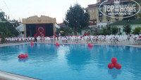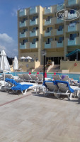 Территория: территория маленькая. Отель разместился между двумя пятерками. Есть маленькая детская площадка. Бассейн с горкой, у бассейна бар с напитками. До 17 часов женщина печет вкусные лепешки с творогом и картофелем.