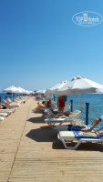 - а вот сейчас по пляжу и морю: Море чистое и теплое, но только при входе с пирса! если Вы с маленьким ребенком - то для Вас или бассейны или не совсем чистое море: т.е для малышей и тех кто не решается идти в море с пирса (лестница есть - прыгать не надо) и хочет зайти в море мягко по песочку- все так! НО!!! Пляж маленький, рядом яхты и катера, на воде плавают масляничные пятна и как будьто хлопья туалетной бумаги. НЕПРИЯТНО. Мы ребенка купали в бассейне- а ведь везли на море! :( И Лежаков на пирсе и пляже примерно всего около 200 ! Поэтому попасть на лежачок проблема! Приготовьтесь к тому, что придется вещи или к кому то под зонт вешать и загорать стоя или пожалуйте прямо на песок! Пляж отеля расположен так , что после 15.00 солнца на пляже уже нет , а после 18.00 его нет и на пирсе! Хотя это может быть плюсом для тех кому противопоказано солнце и тех кто избегает загара . Море то ведь есть!