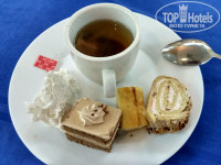 ЕДА. Завтраки европейские, но выбрать для себя что-то подходящее всегда можно. Йогурты нескольких видов,блинчики, бесподобная выпечка, яйца, даже картофель и овощи. О напитках не упоминаю, они разнообразны. Обеды и ужины более содержательны, очень большое количество овощных салатов и просто нарезанных овощей, 2-3 вида мяса, рыба, пицца, множество гарниров,несколько раз были крабы.Первые блюда в виде супов- пюре,что несколько разочаровывает. В остальном всё на пять. Особенно хочется отметить десерты. Мороженое, пирожные, булочки, кексы, фрукты в сиропе, персики, дыня, арбуз,яблоки,сливы. Кондитеры здесь просто замечательные. Мои знакомые в поездке на экскурсию останавливались в 5-звёздочном отеле на обед и отдыхающие в этом отеле жаловались им, что есть почти нечего и приходится тратить около часа на поиски еды. Как видите, где-то бывает и так.