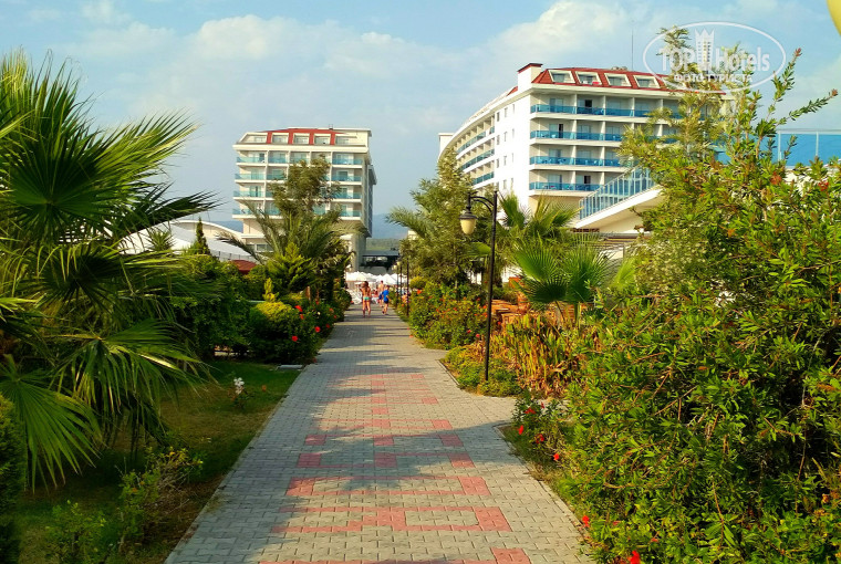 Средний отель для пассивного отдыха. Персонал только только один раз удивил когда носильщику дав на чай два евро-ухмылка была шокируще негативной. Питания хватало но пару раз случилось то что мест на всех постояльцев не хватило. Через день эту проблему исправили. Территория маленькая. По округе погулять негде.либо вдоль трассы либо вдоль теплиц. Свой пляжик небольшой.анимация не очень активная. Со стороны трассы есть неконтроллируемая дверь на территорию. Хороший аквапарк. Вид из окна отеля либо на море либо на теплицы и горы. С одной стороны подьездные дороги к отелю-слышны с утра и кухня и товаары и работники отдыхающие в переррыв.