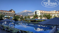 Территория маленькая, как дача в 6 соток, есть уютные столики в тени. Бассейн чистый. После 23ч. отель засыпает.