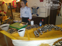 Ресторан. Тараканы... Еда скудная...макароны...рис...даже фри несчасная была только один раз. Неплохой гриль на улице, только он и спасал ужины. Жарят индейку, форель,курицу. (Находится справа от бассейна) Не все про гриль знают кстати. Посуда грязная....фу. Вино на обед и ужин брали сами в холодильнике в центре зала. Со столами возникла проблема только в турецкую ночь, в остальные дни всегда было свободно.